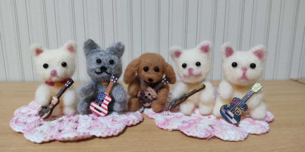 羊毛を針でチクチク、次第にまとまるので色々な形を作ることができるのが、羊毛フェルト手芸。